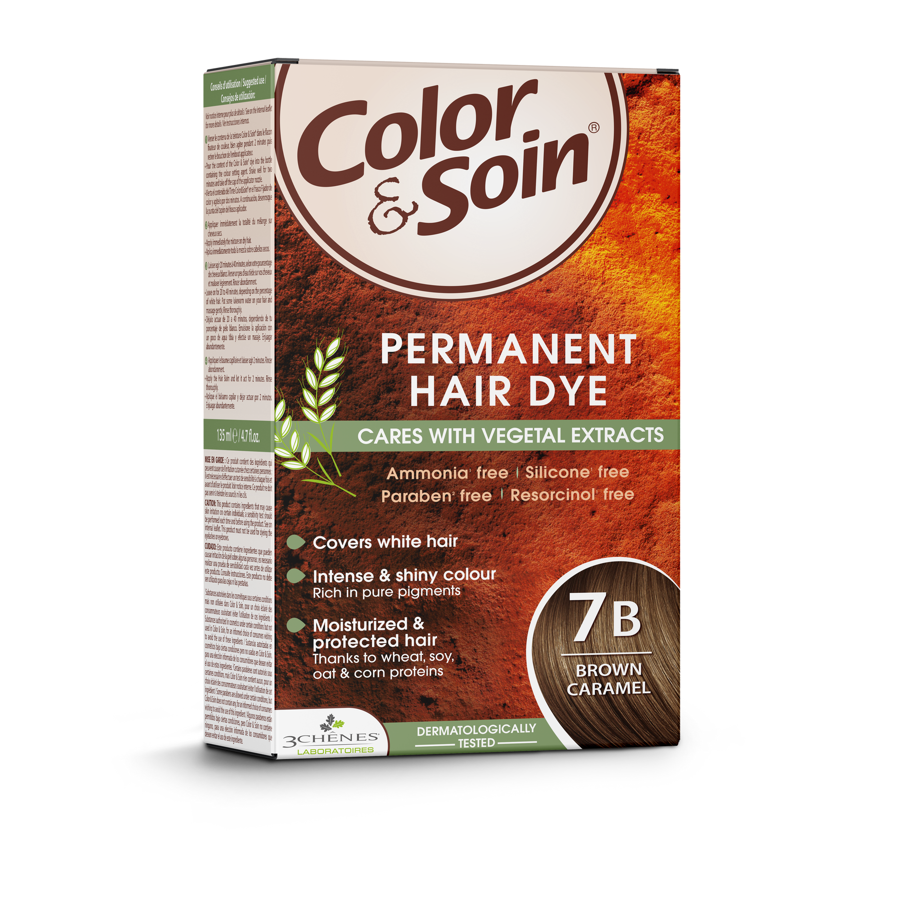 COLOR & SOIN plaukų dažai be amoniako 7B Brown Caramel – švelnūs ilgalaikiai plaukų dažai su augaliniais ekstraktais, tinka visiems plaukų tipams bei jautriai galvos odai. Dermatologiškai patikrinta formulė be amoniako, silikono ir kitų agresyvių medžiagų užtikrina intensyvią, ilgai išliekančią spalvą, drėkina, kondicionuoja plaukus ir palaiko jų natūralų glotnumą bei elastingumą. Nudažo žilus plaukus jau pirmojo dažymo metu.