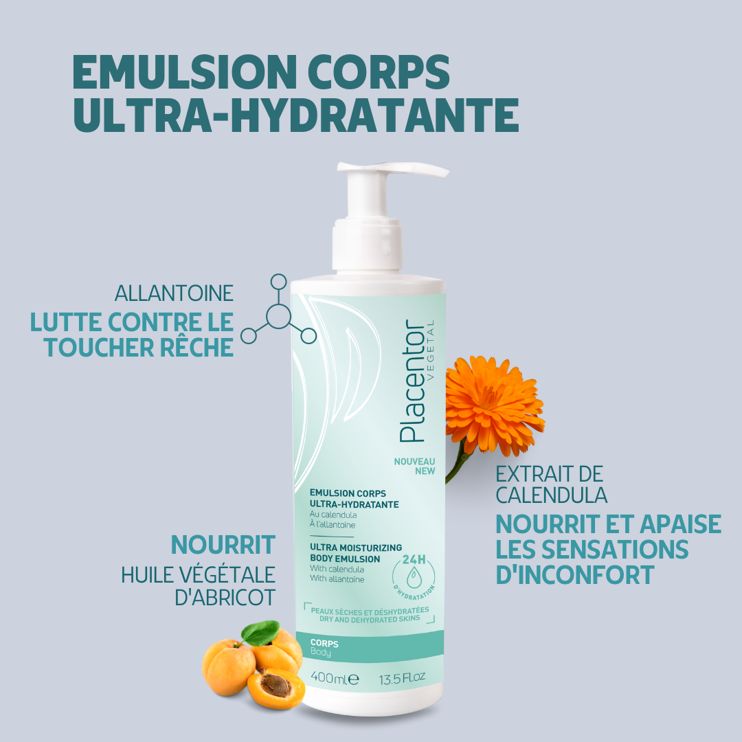 PLACENTOR intensyviai drėkinanti emulsija kūnui sausai, dehidratuotai odai, su pompa 400ml