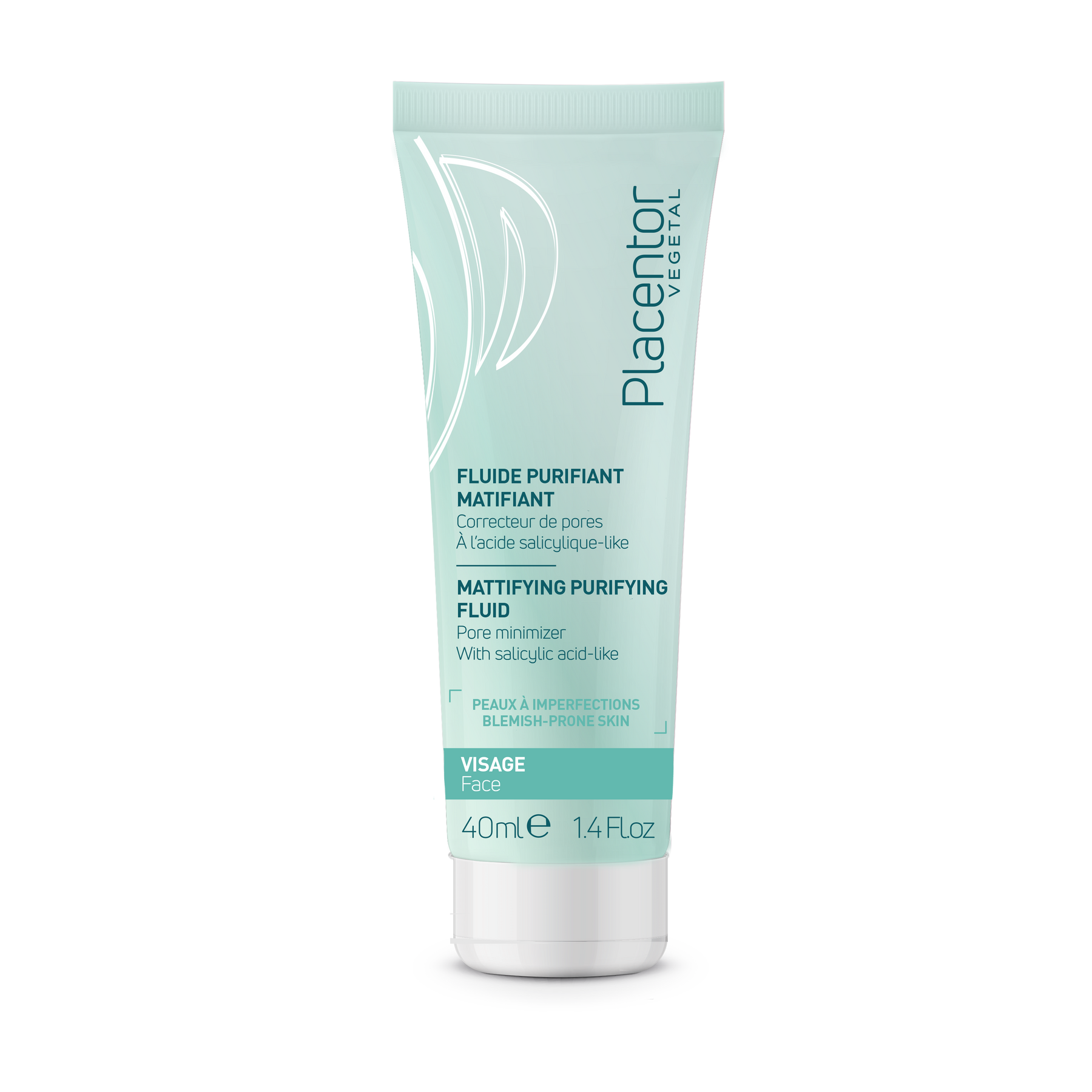 PLACENTOR valomasis, matinį efektą suteikiantis fluidas mišriai, riebiai odai 40ml