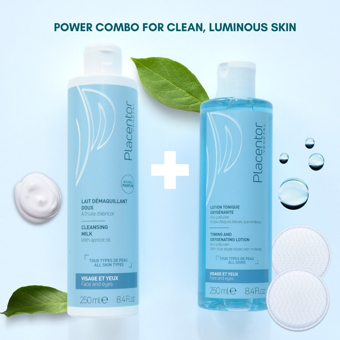 Kasdien ryte ir vakare valyti veidą ir akių sritį vatos diskeliu suvilgytu valomuoju pieneliu. Veido odos valymo ritualą užbaikite Placentor Vegetal tonizuojamuoju losjonu - toniku.