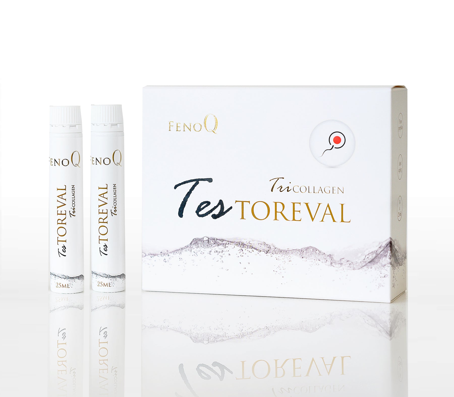 Sumažėjęs vaisingumas, lytinis potraukis, ištvermė ir kitos silpnėjančio vyriškumo savybės stipriai pažeidžia vyrus nepriklausomai nuo to, kiek jiems metų. „FenoQ Tricollagen Testoreval“ užduotis užtikrinti, kad vyrų organizme netrūktų medžiagų reikalingų vaisingumui, vyriškumui, jaunystei ir neribotam judėjimui puoselėti. Preparato efektyvumą lemia kruopščiai tarpusavyje suderinti vitaminai, mineralai, augaliniai komponentai, trikolageno peptidai ir kiti biologiškai aktyvūs ingredientai, kurie skatina natūralią pagrindinio vyriško hormono – testosterono gamybą organizme.
