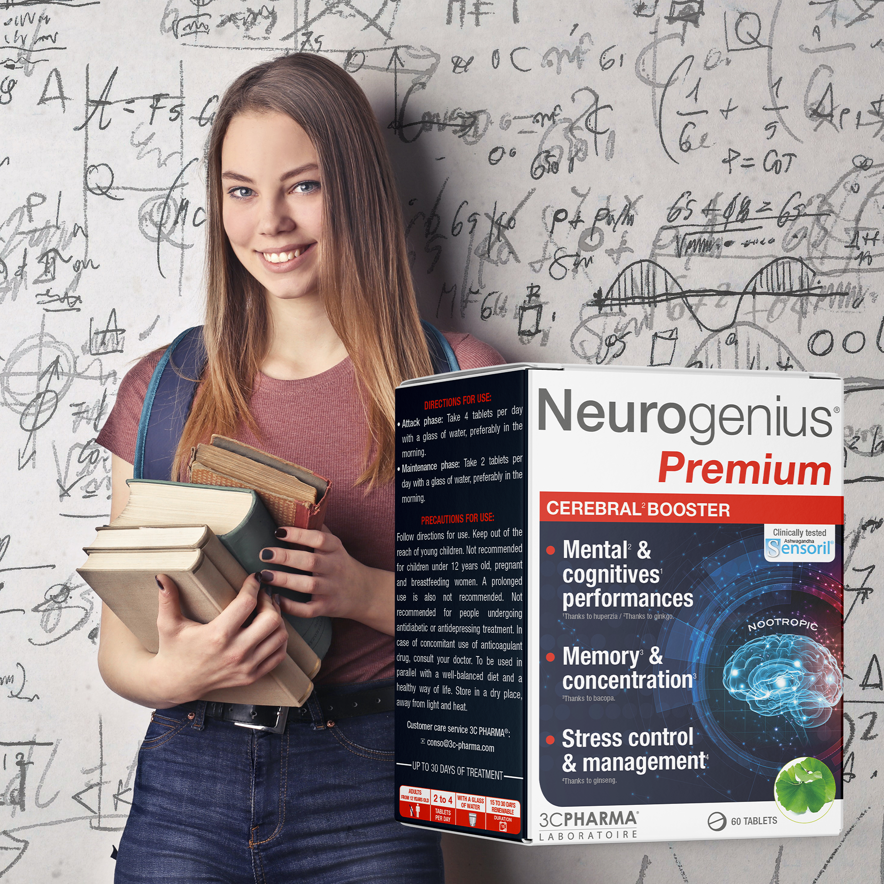 3C PHARMA Neurogenius Premium – tai augalinių nootropikų bei kitų natūralių veikliųjų medžiagų kompleksas, praturtintas vitaminais atminčiai, protinei veiklai bei koncentracijai palaikyti. Formulėje derinami tradiciniai augaliniai ekstraktai ir kognityvinę funkciją palaikančios medžiagos, kurios padeda kovoti su energijos trūkumu, palaikyti protinę ištvermę ir prisidėti prie streso valdymo. Šis kompleksas gali būti naudingas moksleiviams ar studentams, sportininkams, senjorams bei asmenims, dirbantiems protinį darbą ar patiriantiems nuolatinę įtampą.