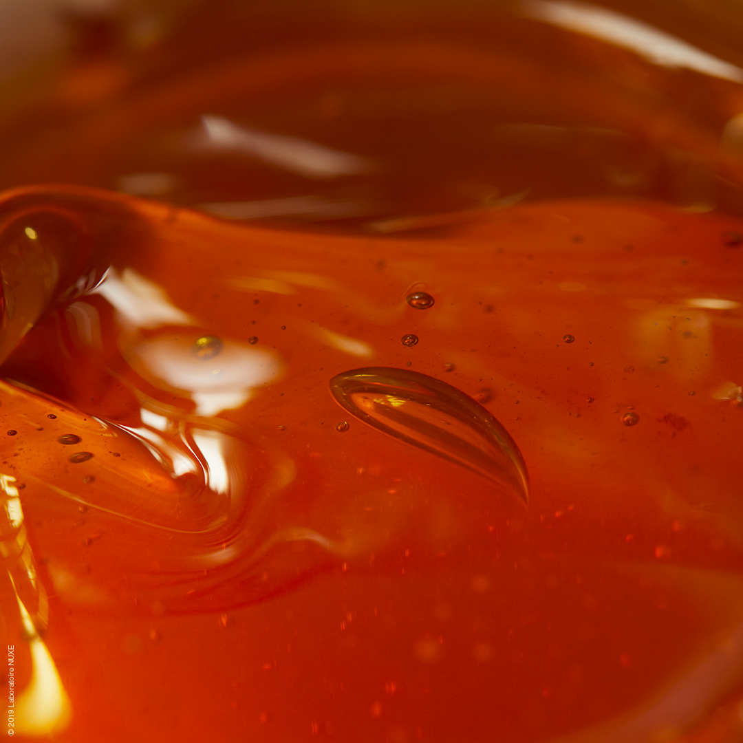 NUXE laboratorija naudoja medų, nes jo sudėtyje gausu cukraus, kuris tampa puikia komfortą suteikiančia sudedamąja kosmetinių priemonių dalimi, kuri apsaugo epidermį nuo žalingų aplinkos faktorių ir išsausėjimo – tai tikras lobis sausai odai!